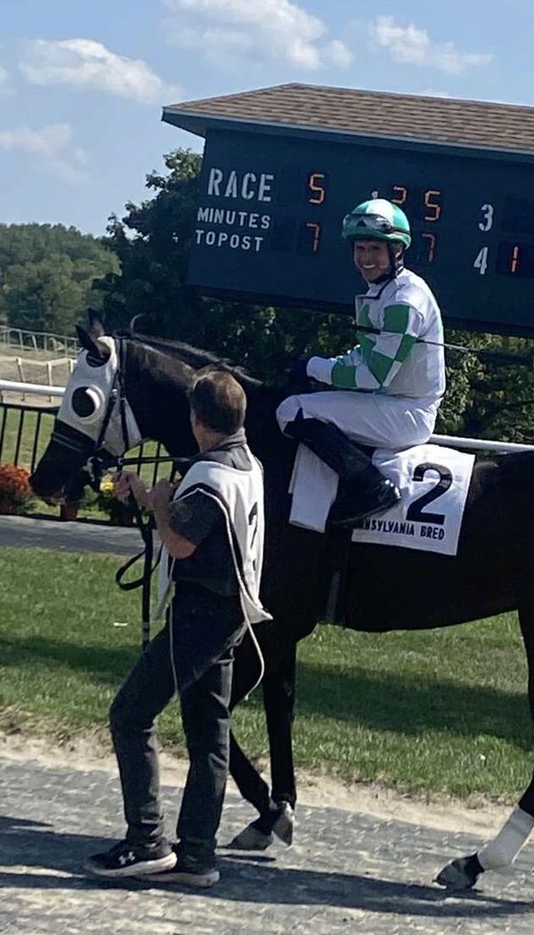 SHE RAN A REAL NICE RACE AT PARX RACE TRACK ON SEPT. 19TH FOR A MAIDEN SPECIAL WEIGHT $65,000. SHE LED MOST OF THE WAY THEN TIRED AT THE END. LOOKING FOR A BIG RACE OUT HER NEXT TIME.